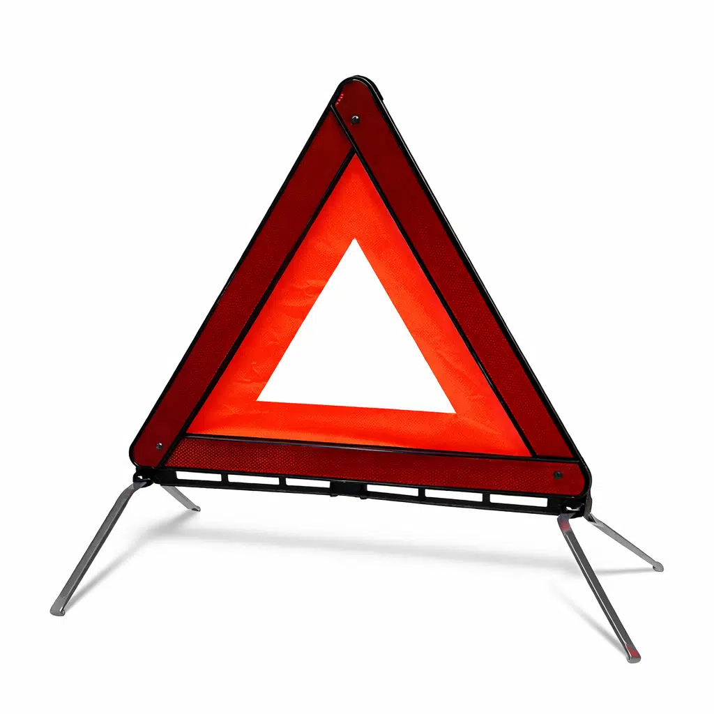 Mega Oto Market Örümcek Ayaklı Üçgen Reflektör – Plastik Kutulu Katlanabilir Trafik İkaz Reflektörü