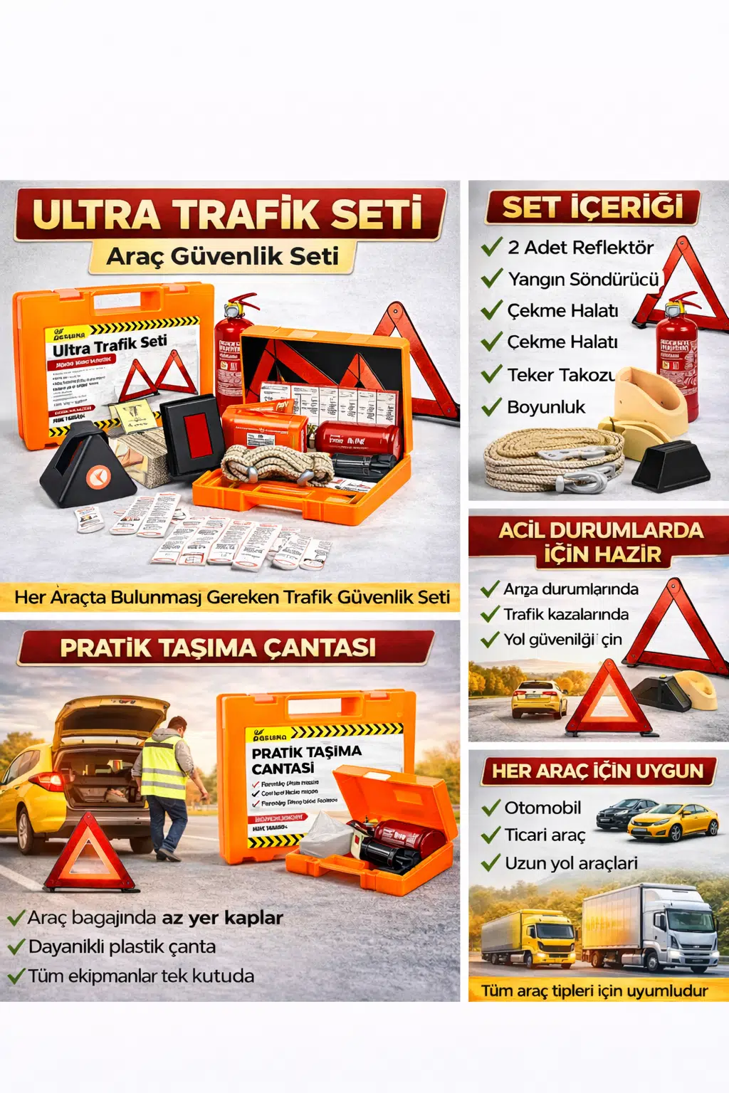 Araç güvenliğinizi artırmak ve trafikte oluşabilecek acil durumlara hazırlıklı olmak için Mega Oto Market Ultra Trafik Seti pratik, düzenli ve güvenilir bir çözümdür.