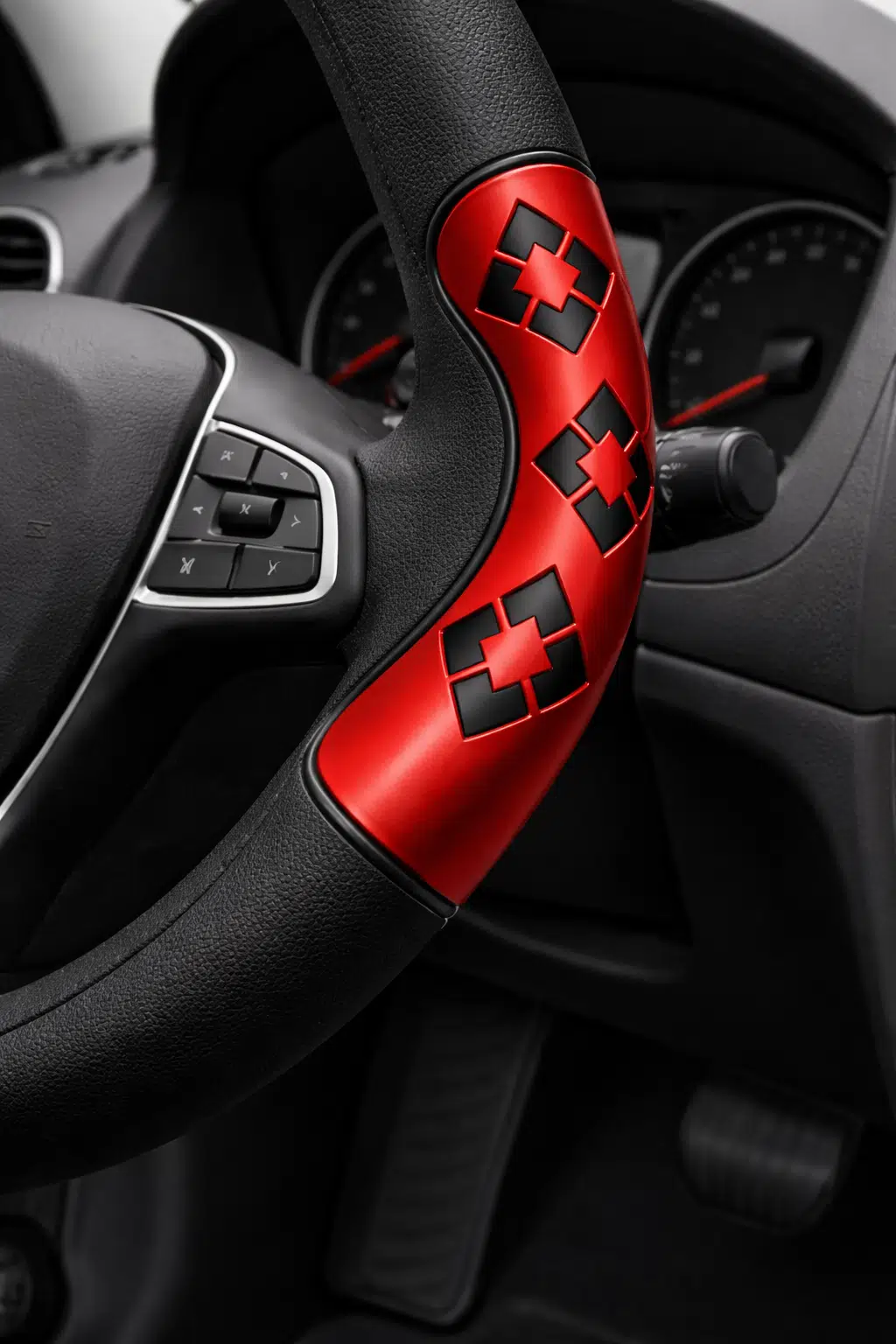 Mega Oto Market 38 cm Universal Direksiyon Kılıfı, aracının direksiyonunu korumak ve sürüş konforunu artırmak isteyen kullanıcılar için tasarlanmıştır. Siyah zemin üzerine kırmızı detaylı sportif tasarımı sayesinde aracınızın iç görünümünü şık bir şekilde tamamlar.