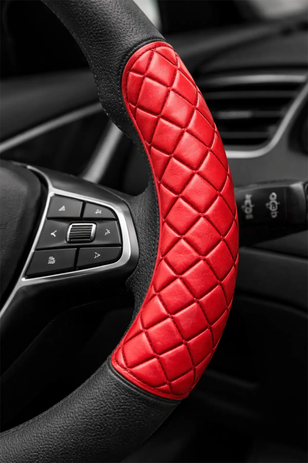 Mega Oto Market 38 cm Universal Direksiyon Kılıfı, aracının direksiyonunu korumak ve sürüş konforunu artırmak isteyen kullanıcılar için tasarlanmıştır. Siyah zemin üzerine kırmızı detaylı sportif tasarımı sayesinde aracınızın iç görünümünü şık bir şekilde tamamlar.