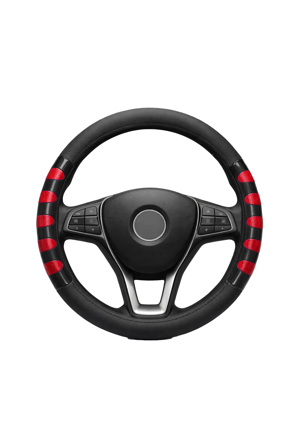 Mega Oto Market 38 cm Universal Direksiyon Kılıfı, aracının direksiyonunu korumak ve sürüş konforunu artırmak isteyen kullanıcılar için tasarlanmıştır. Siyah zemin üzerine kırmızı detaylı sportif tasarımı sayesinde aracınızın iç görünümünü şık bir şekilde tamamlar.