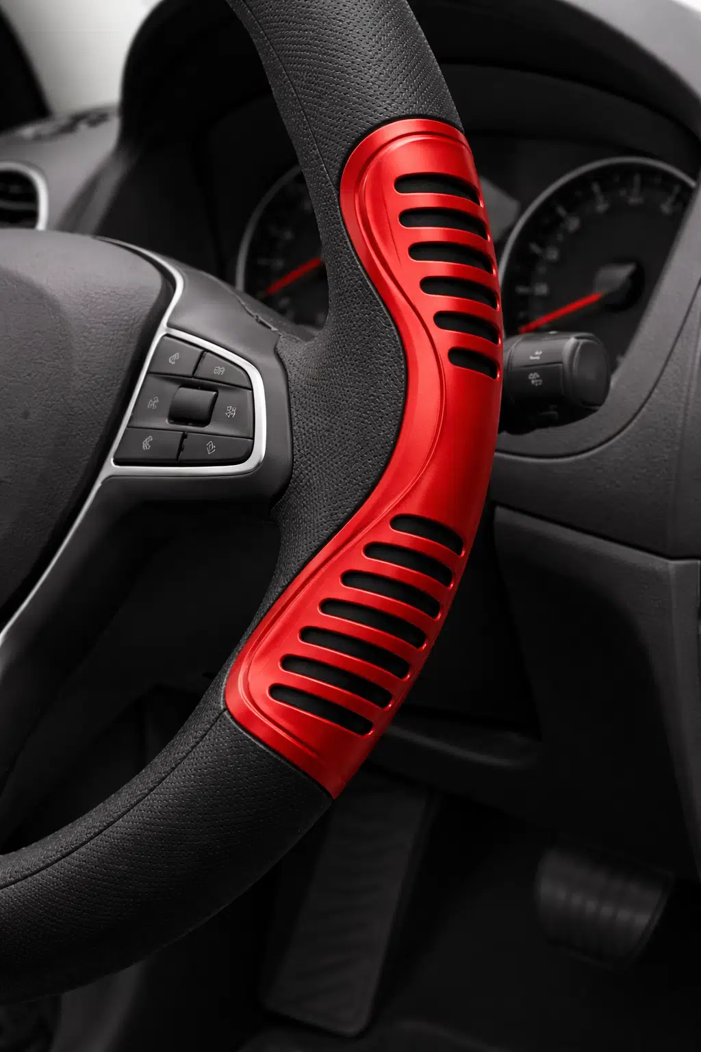 Mega Oto Market 38 cm Universal Direksiyon Kılıfı, aracının direksiyonunu korumak ve sürüş konforunu artırmak isteyen kullanıcılar için tasarlanmıştır. Siyah zemin üzerine kırmızı detaylı sportif tasarımı sayesinde aracınızın iç görünümünü şık bir şekilde tamamlar.
