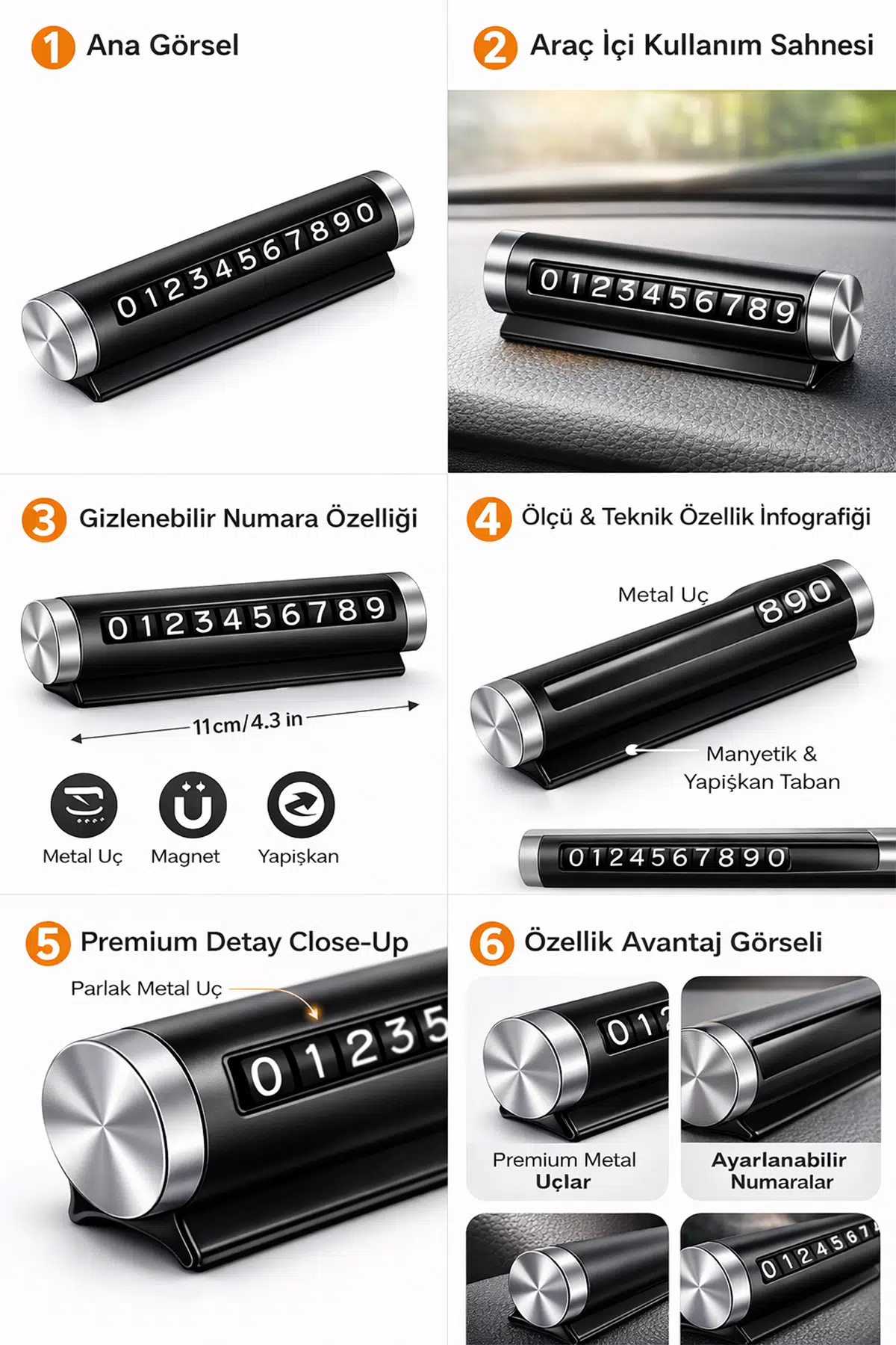 FR-601 Mega Oto Market Siyah Metal Kasa Araç İçi Telefon Numaratör – Numara Çevirmeli Oto Parkmatik, aracınızı park ettiğiniz alanlarda iletişim bilgilerinizi pratik ve şık bir şekilde sergilemeniz için tasarlanmış dayanıklı ve kullanışlı bir oto aksesuar ürünüdür. Modern siyah metal kasa tasarımı sayesinde hem estetik bir görünüm sunar hem de uzun ömürlü kullanım sağlar.