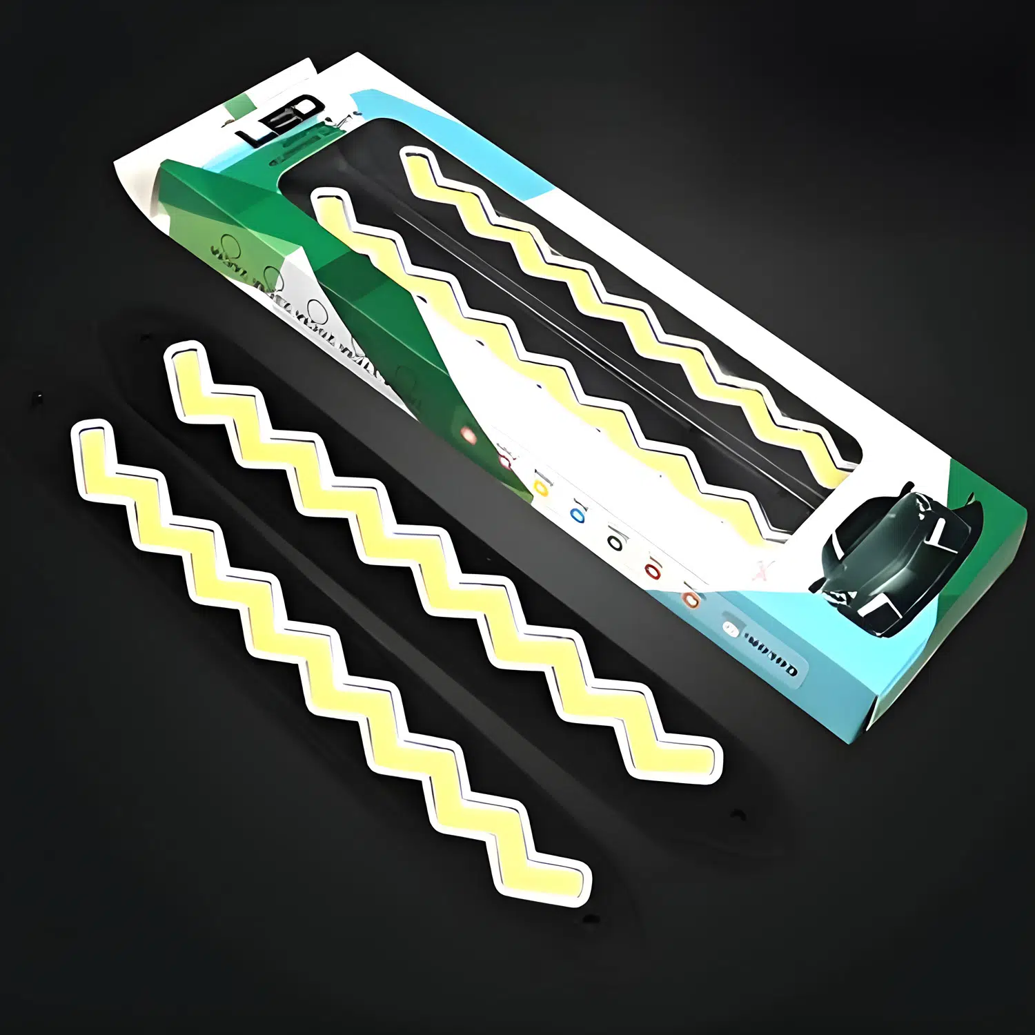 Bu şerit tipi gündüz farı (DRL), zigzag tasarımıyla dikkat çekerken, güçlü beyaz LED ışığı sayesinde trafikte fark edilirliğinizi artırır. Kolay montaj özelliğiyle çoğu araç markası ve modeliyle uyumludur. Esnek silikon yapısı, düz veya kavisli far yüzeylerine sorunsuz şekilde uygulanabilir.