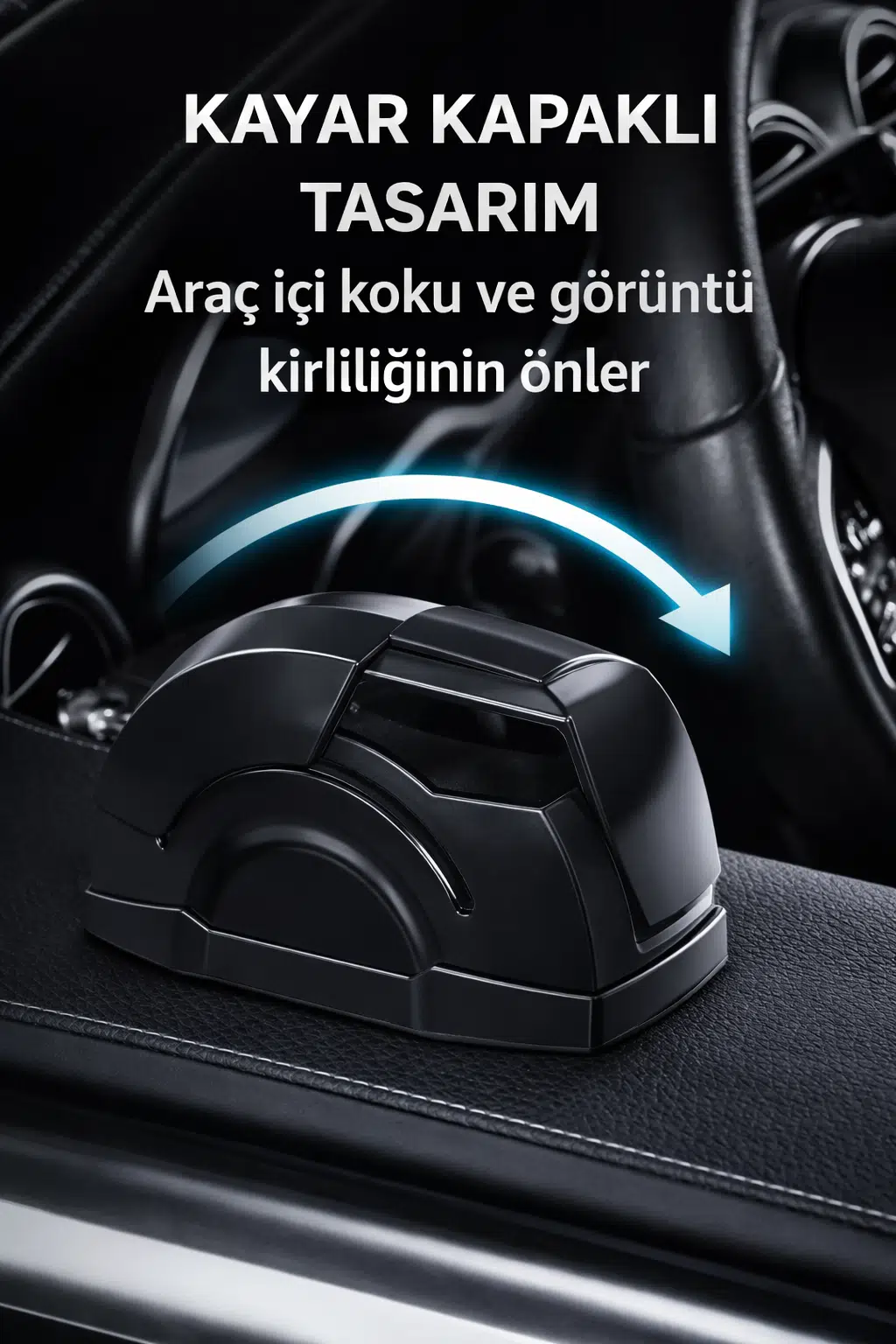 Kapaklı ve açılır kapanır tasarımı sayesinde kötü koku yayılımını azaltmaya yardımcı olur. Kullanım sonrası kapağın kapatılması ile kül ve izmarit görünümü gizlenir, araç içi daha düzenli ve temiz bir görünüm kazanır. Kompakt yapısı sayesinde sürüş sırasında görüş alanını engellemez.