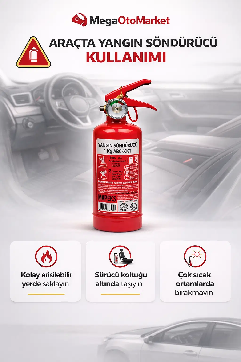 Mega Oto Market Mini Araç Tipi Yangın Söndürücü 1 KG ABC KKT Yangın Tüpü