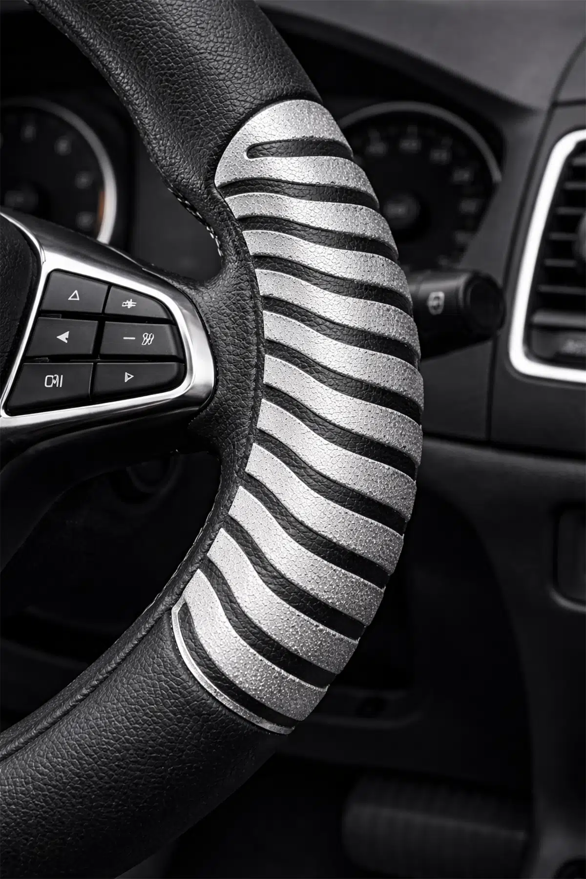 Mega Oto Market 38 cm Universal Direksiyon Kılıfı, aracınızın direksiyonunu korumak ve sürüş konforunu artırmak için tasarlanmış pratik ve şık bir oto aksesuarıdır. Siyah zemin üzerine gri detaylı tasarımı sayesinde aracınızın iç mekanına modern ve sade bir görünüm kazandırır.