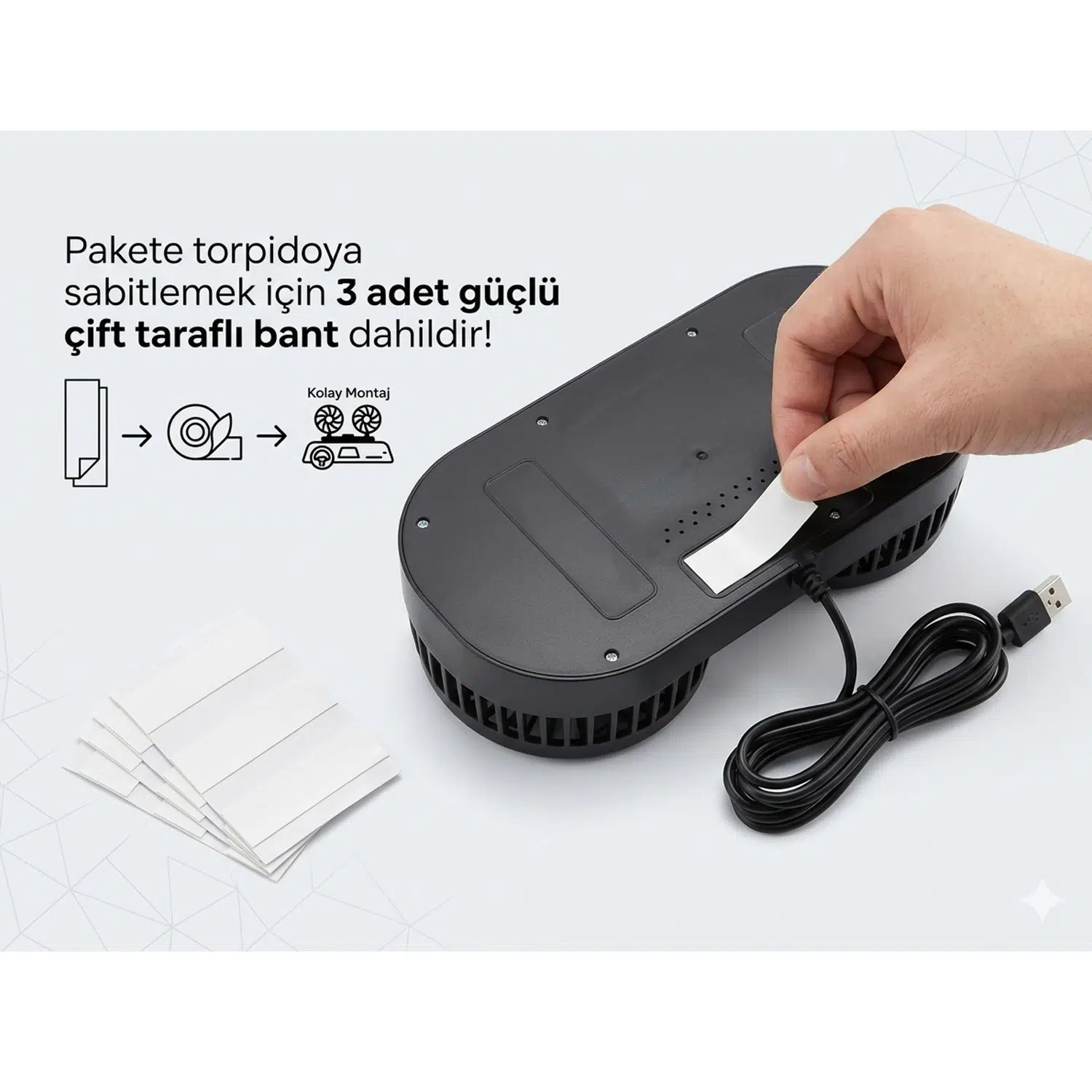 - 1 Adet çift fanlı USB araç içi vantilatör
