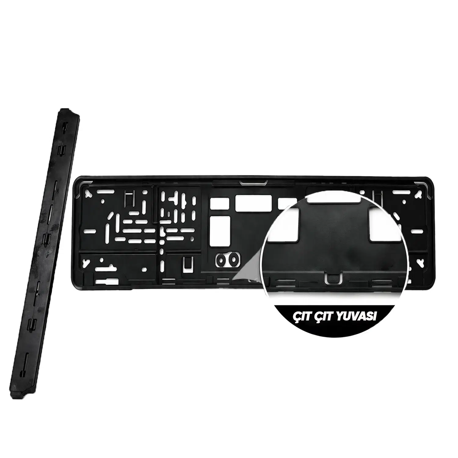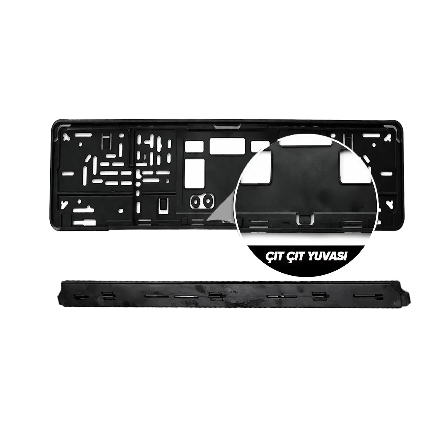 Mega Oto Market Çıta Montajlı Siyah Plaka Altlığı ile aracınızın görünümünü tamamlayın ve plakanızı güvenle sabitleyin.