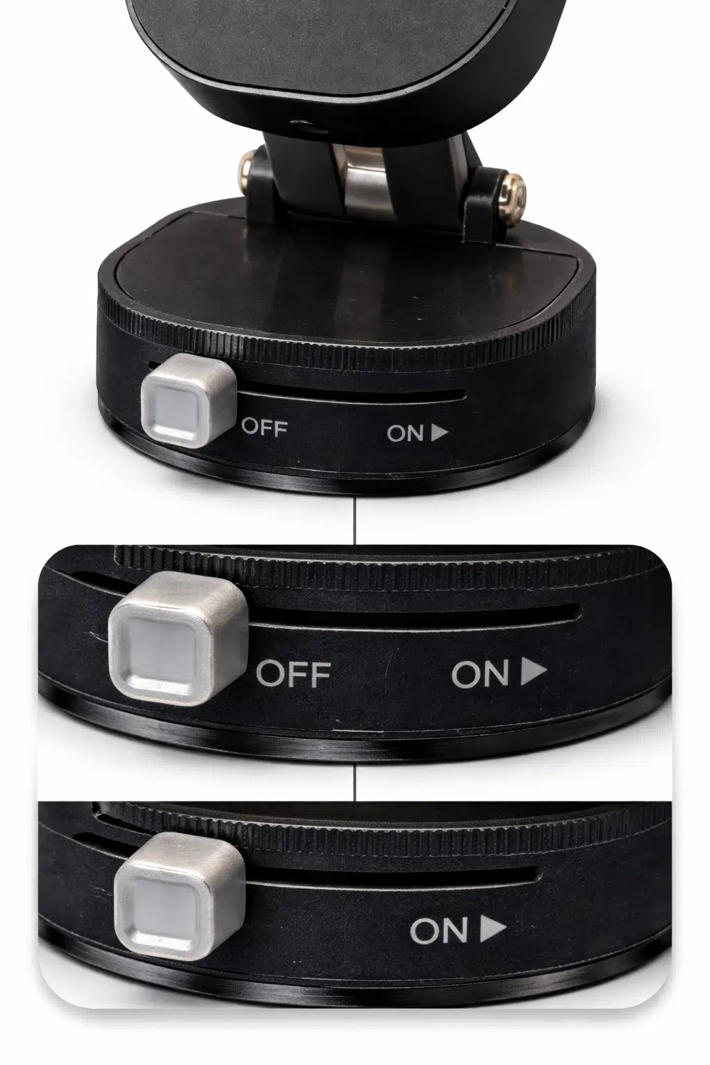 Güçlü vakumlu vantuz sistemi sayesinde ön cam, torpido ve düz yüzeylere sağlam şekilde tutunur. Özel kilitli vakum mekanizması titreşim ve sarsıntıyı minimuma indirerek telefonun sabit kalmasına yardımcı olur. İz bırakmadan sökülüp tekrar kullanılabilen yapıdadır.