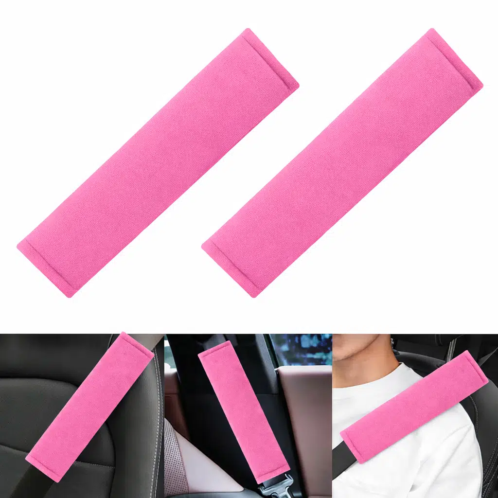 Pembe Yumuşak Kumaş Emniyet Kemer Kılıfı Çift Takım Konforlu ve Koruyucu